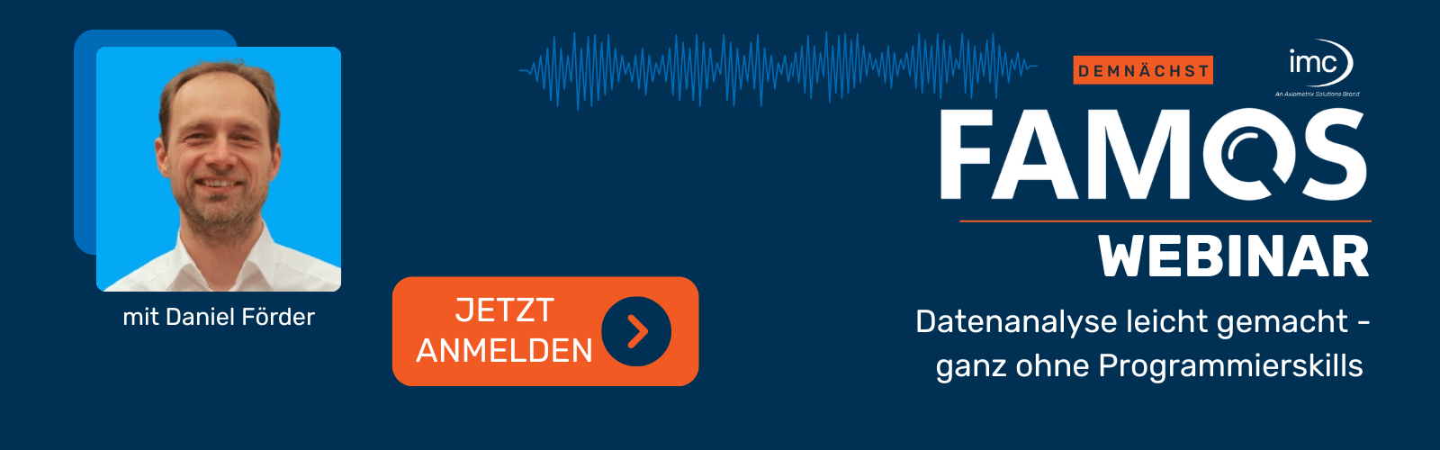 No importa de dónde sea el originen de los datos - banco de pruebas, configuración de prueba o medición de telefonía móvil - imc FAMOS combina todas las herramientas que necesita para la visualización profesional y análisis de los datos: de la importación de datos para imprimir.