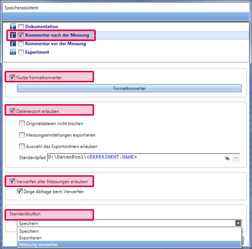El nuevo asistente de almacenamiento de datos facilita sus tareas de medición diarias guiándole a través de los pasos necesarios habitualmente al final de una medición.